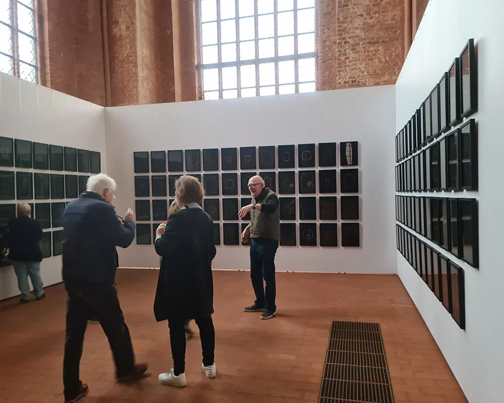 Aus der statischen Präsentation der Bilder eröffnet sich ein kompositorisch und raumakustisch stark bewegter Hörvorgang, immer anders wahrnehmbar, abhängig vom Standort der hörenden Betrachtung.