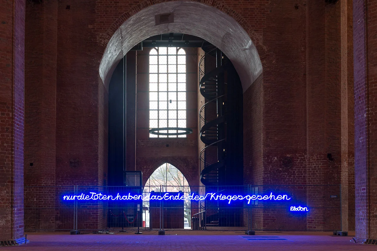Zwischen riesiger Fahne und Antikriegszitat: Neue Ausstellung setzt Zeichen in Wismars